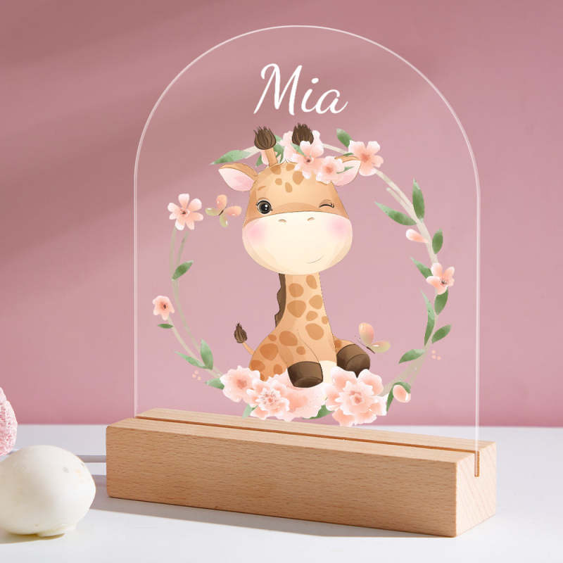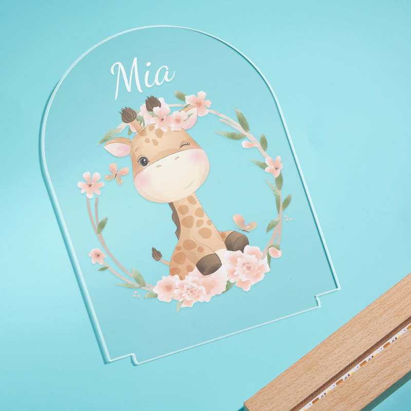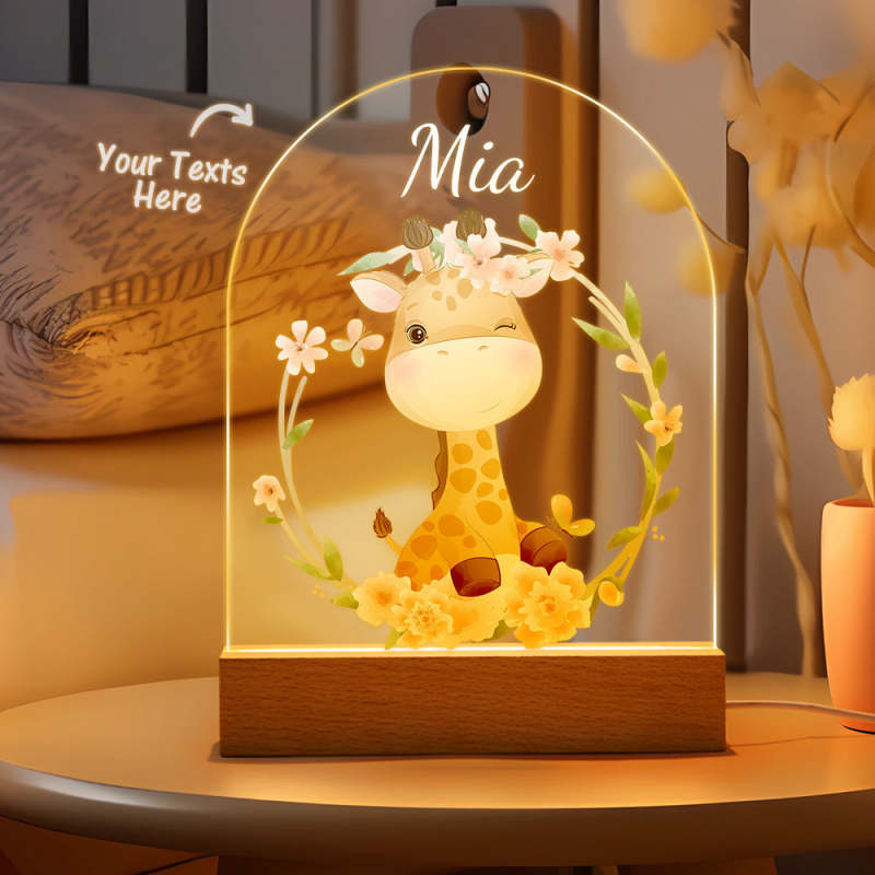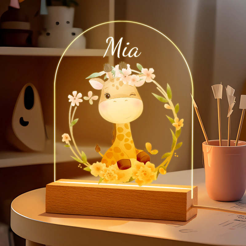 Personalised Giraffe Name Kids Bedside Lamp Custom Luminous Animal Acrylic Board Creative Lamp Kids Room Gift