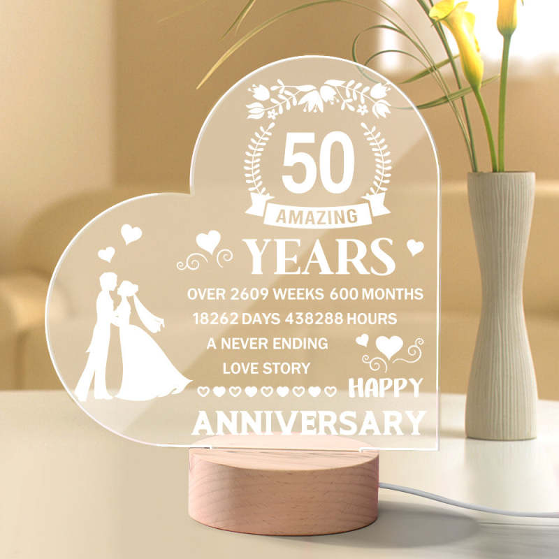 Personalised Night Light Heart Shaped Acrylic Lamp Anniversary Wedding Gifts for Him or Her