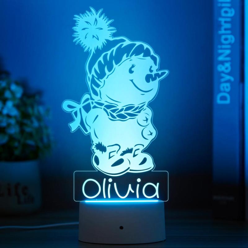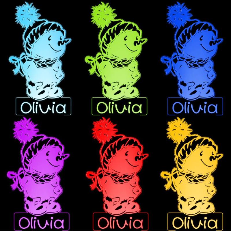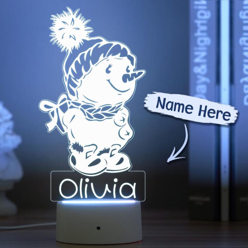 Personalized Snowman Night Lamp With Custom Name Night Light Kid's Bedroom Decor Children's LED Light