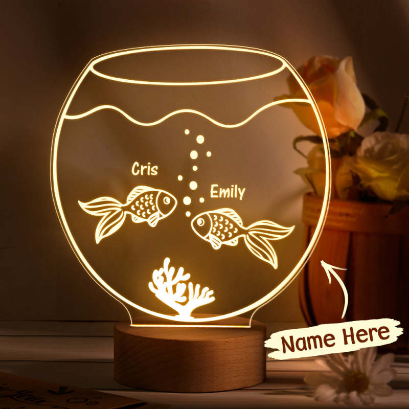 Personalized 3D Goldfish Acrylic LED Night Light With Custom Name Gifts for Kids