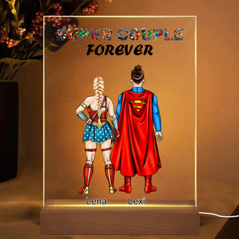Personalized Acrylic Plaque Super Couple Forever Costume Changable Custom Lamp