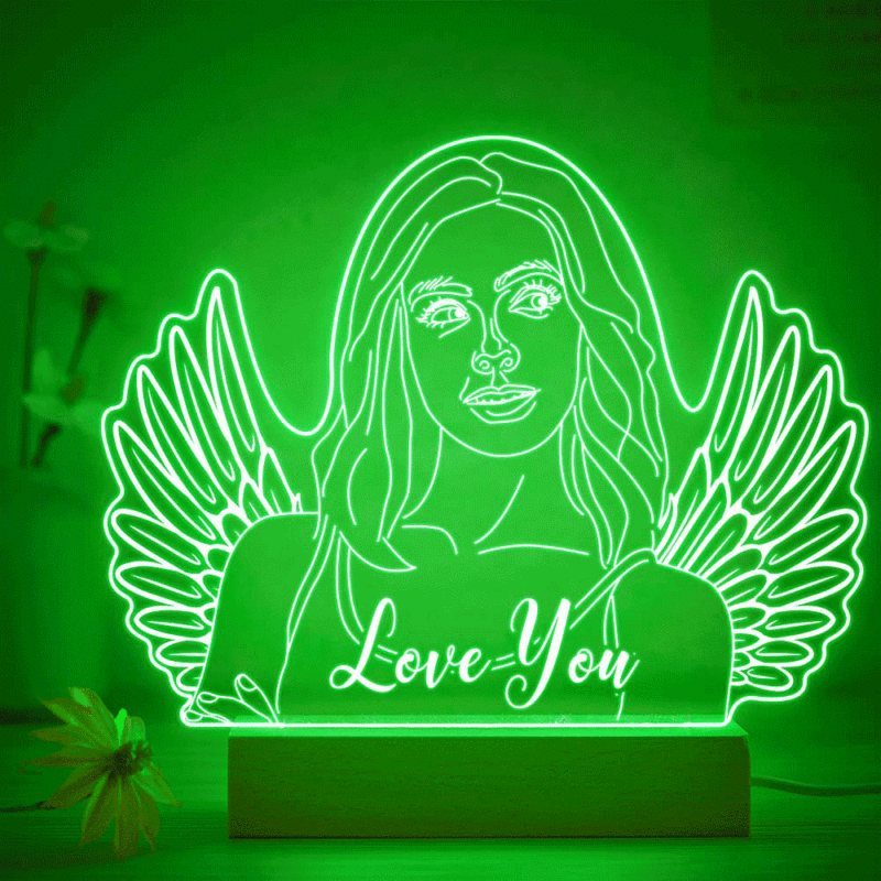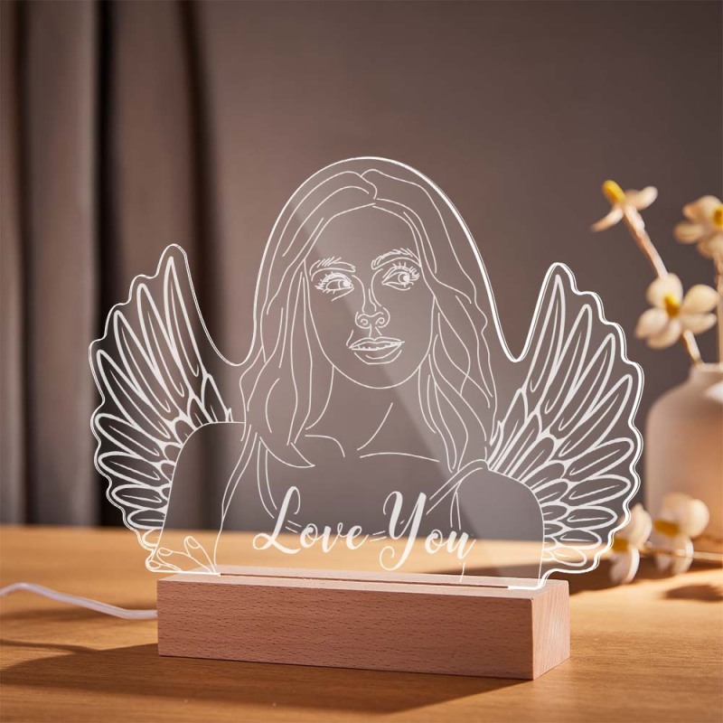 Personalized Angel Wings Photo Night Light Custom Engraved 3D Lamp 7 Colors Acrylic Night Light Gifts for Her