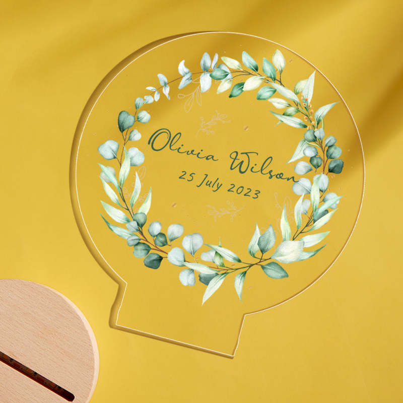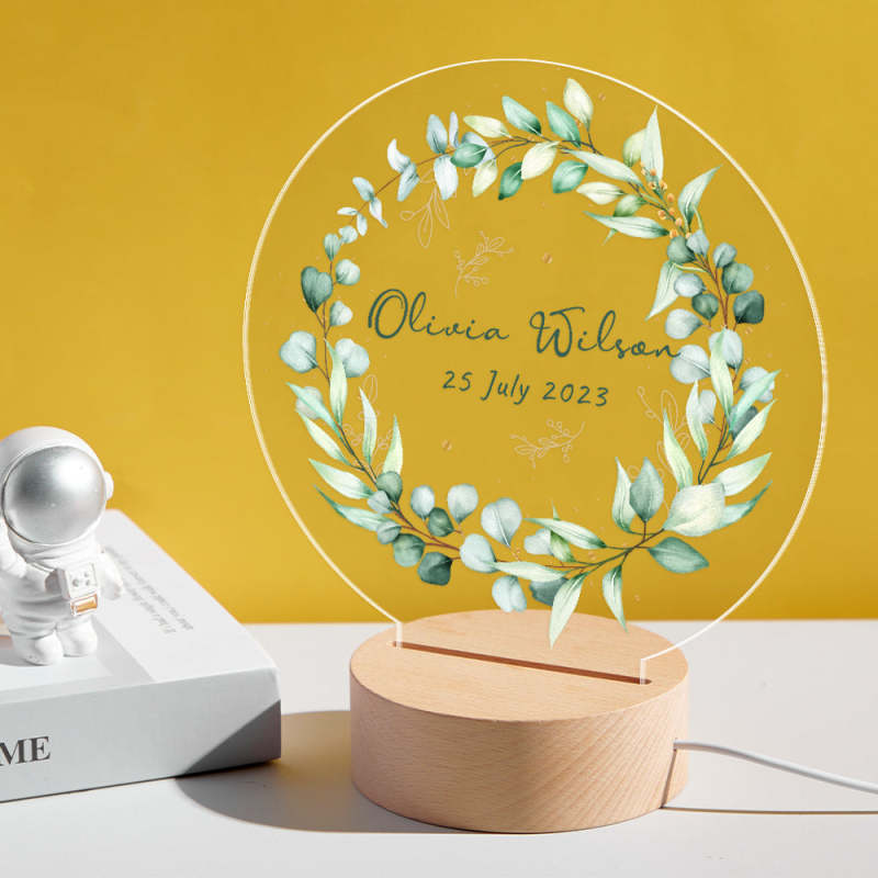 Personalized Baby Name Night Light Custom Green Wreath Baby Room Decor