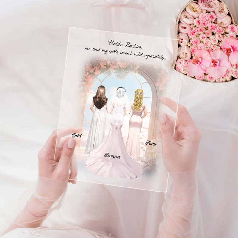 Personalized Bridesmaid Besties Wedding Dress Custom Names Plaque Acrylic Lamp