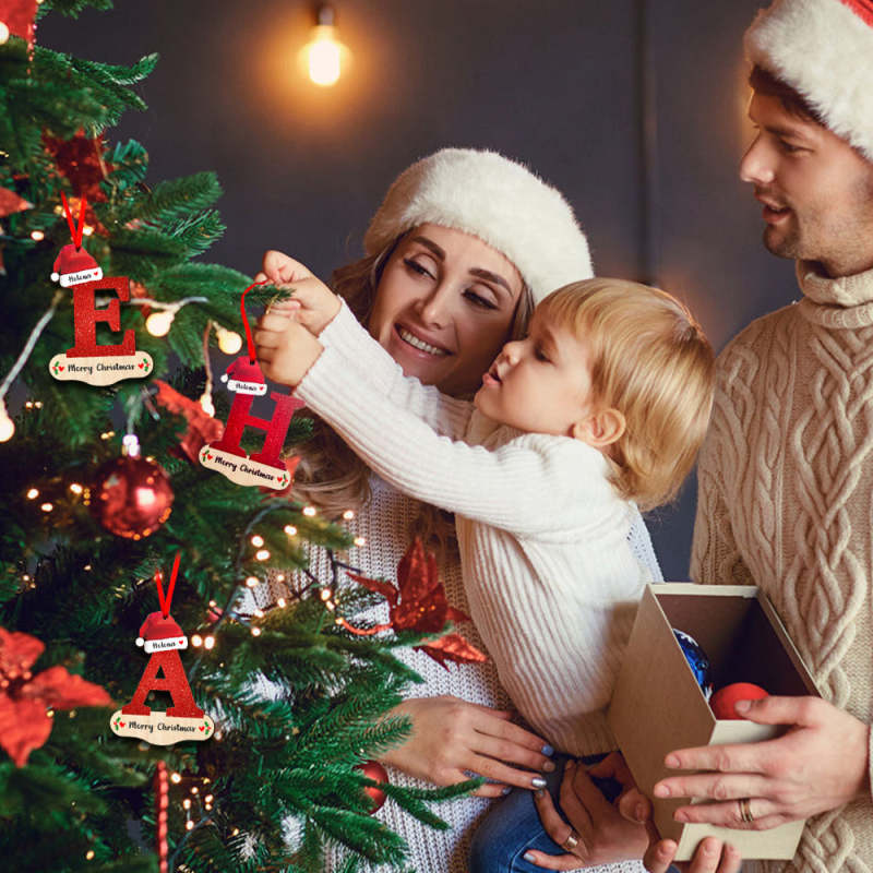 Personalized Christmas Letter Ornament with Red Hat Custom Name Christmas Tree Decoration