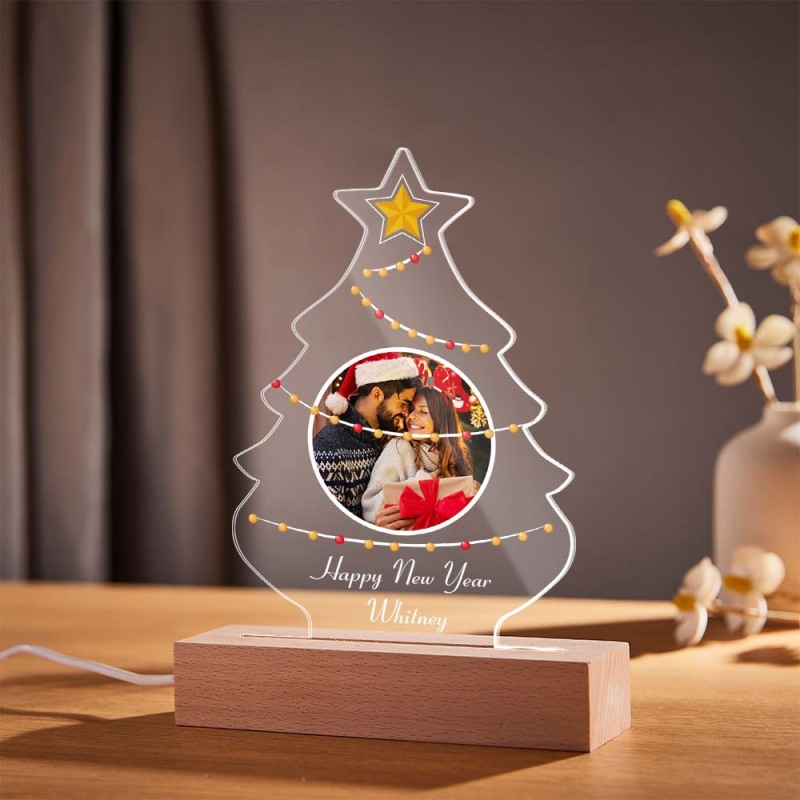Personalized Christmas Tree Photo Night Light Custom Engraved 3D Lamp 7 Colors Acrylic Night Light Christmas Day Gifts