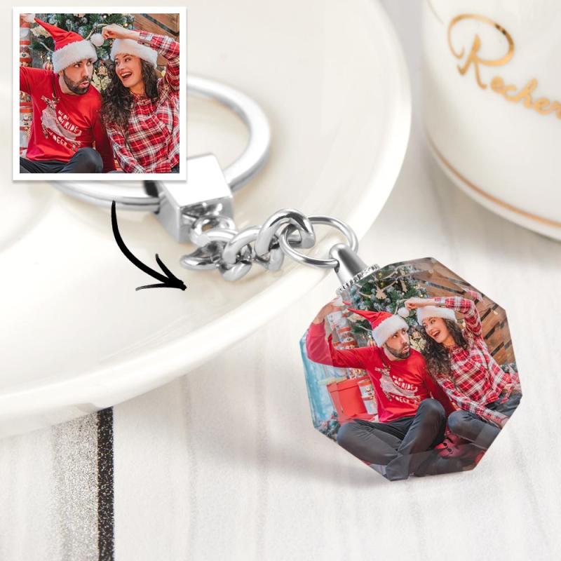 Personalized Couple Photo Crystal Keychain Festival Custom Gift