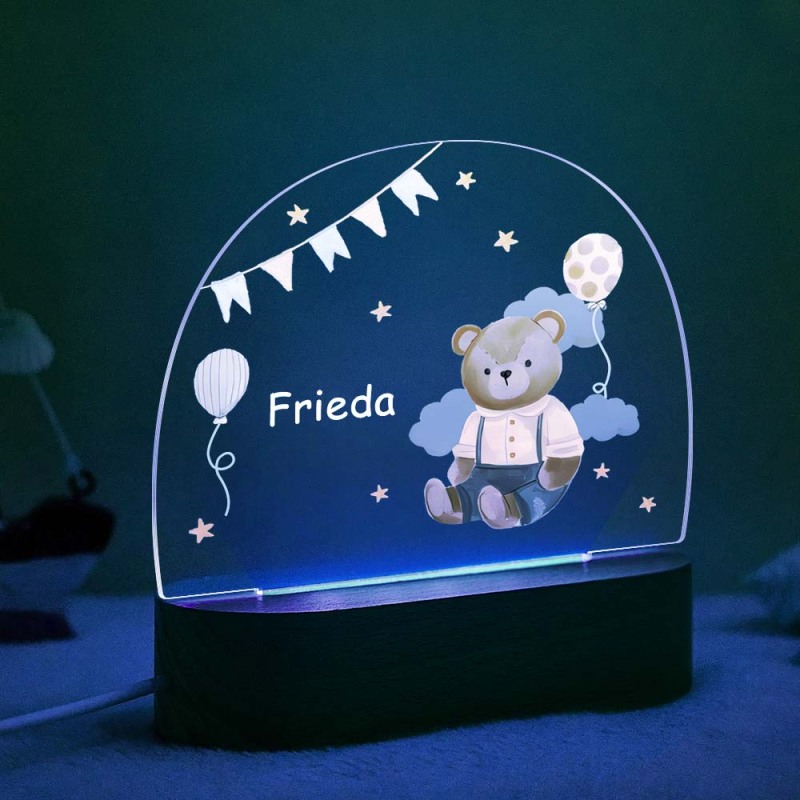 Personalized Cute Bear Night Light Custom Name Light Night Gift for Kids