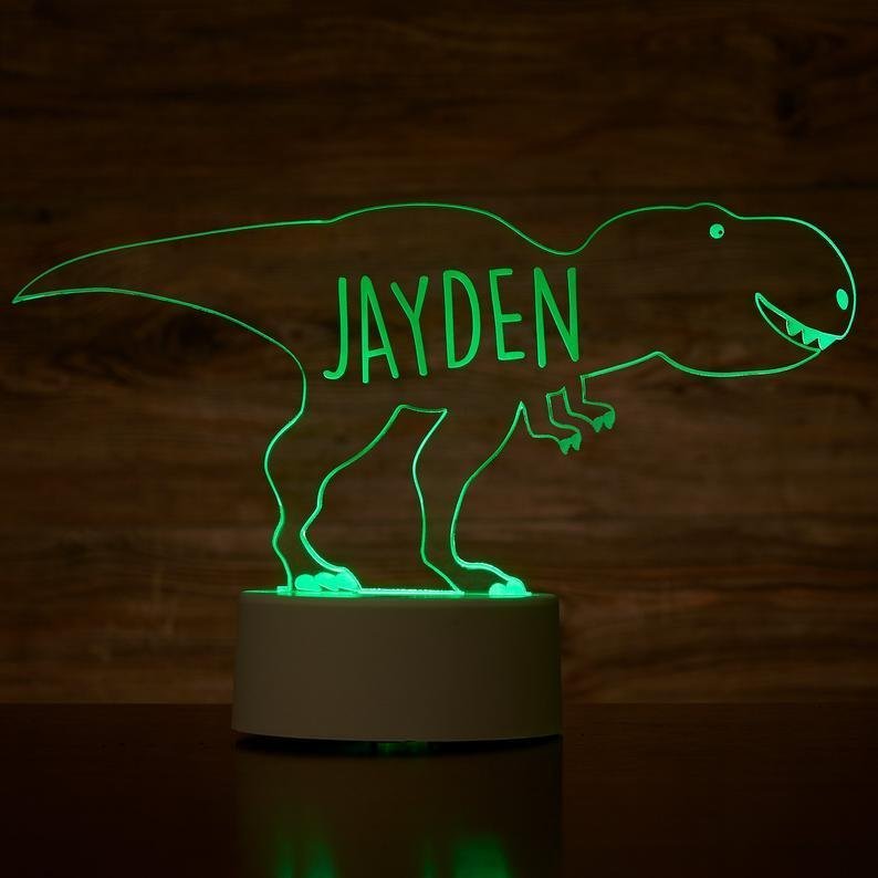 Personalized Tyrannosaurus Rex Dinosaur Lamp With Custom Name Night Light Kid's Bedroom Decor Children's Night Light