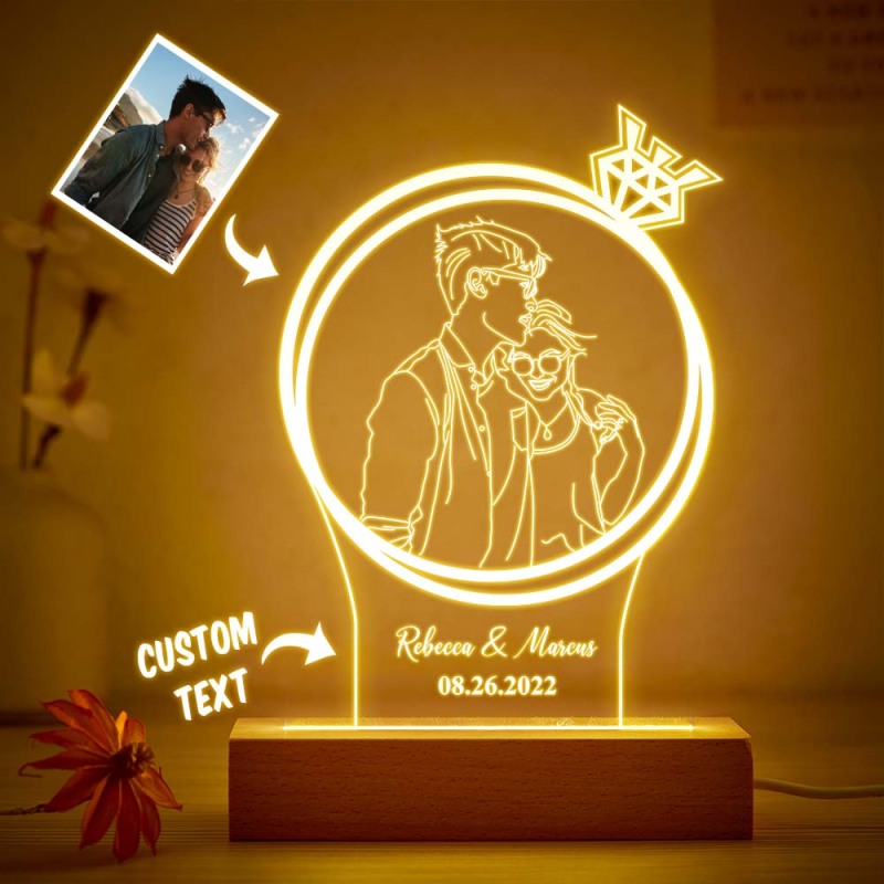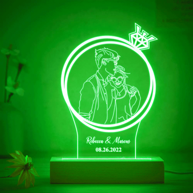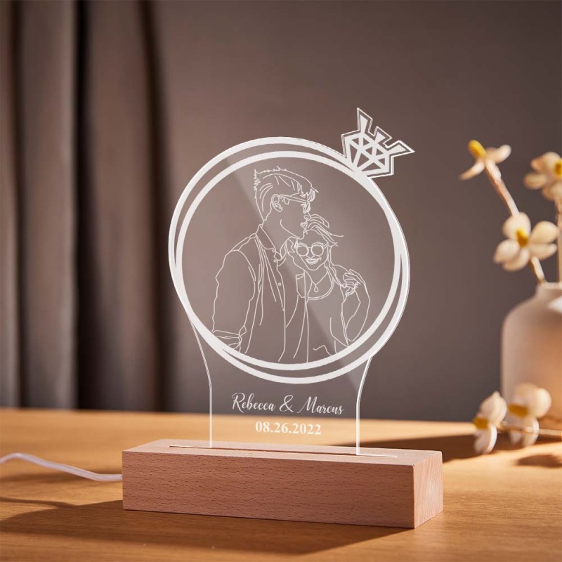 Personalized Double Circle Photo Diamond Night Light Custom Engraved 3D Lamp 7 Colors Acrylic Night Light Romantic Gifts