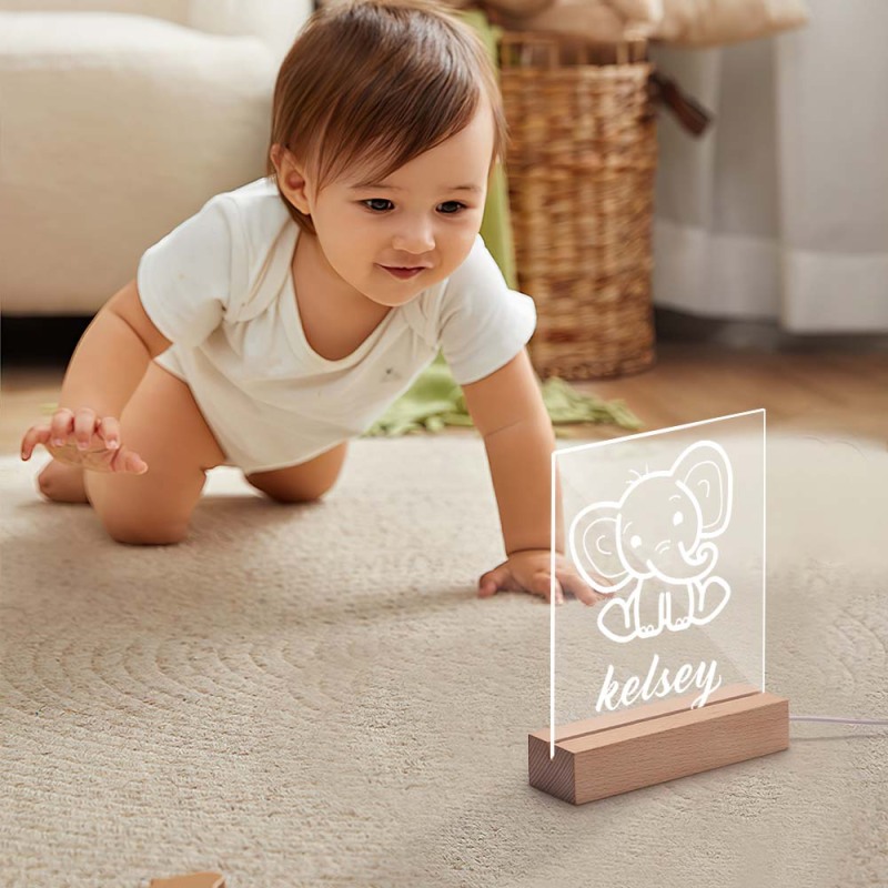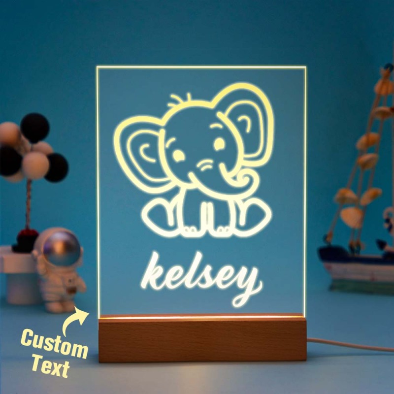 Personalized Elephant Lamp First Name Decoration Baby Room Original Gift Customizable Birth Night Light Child Theme Animals