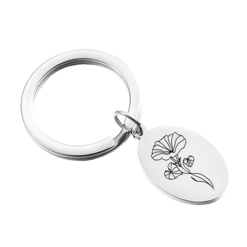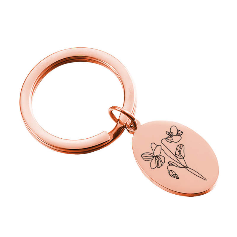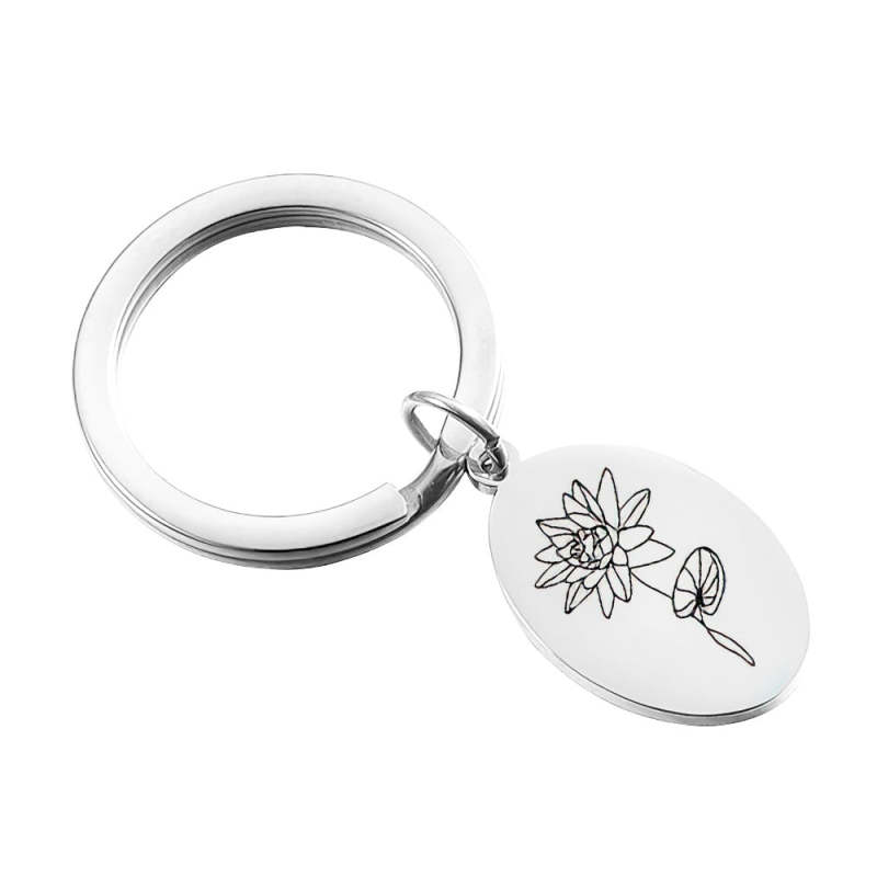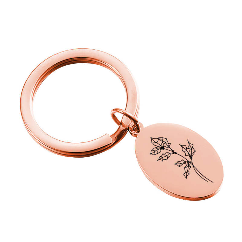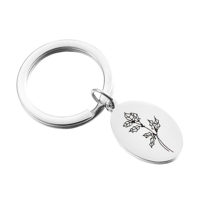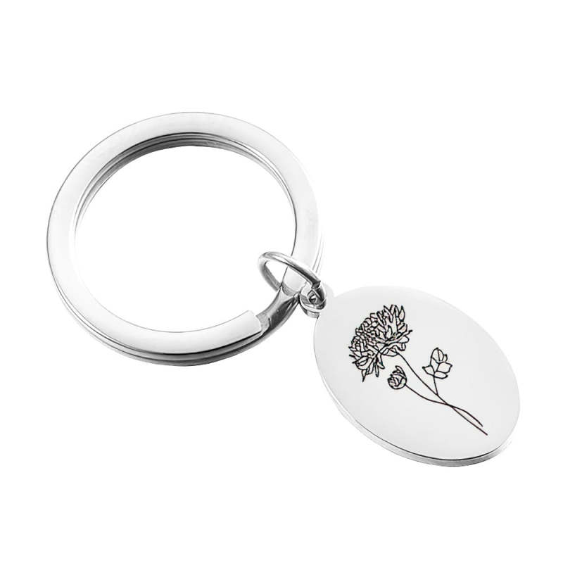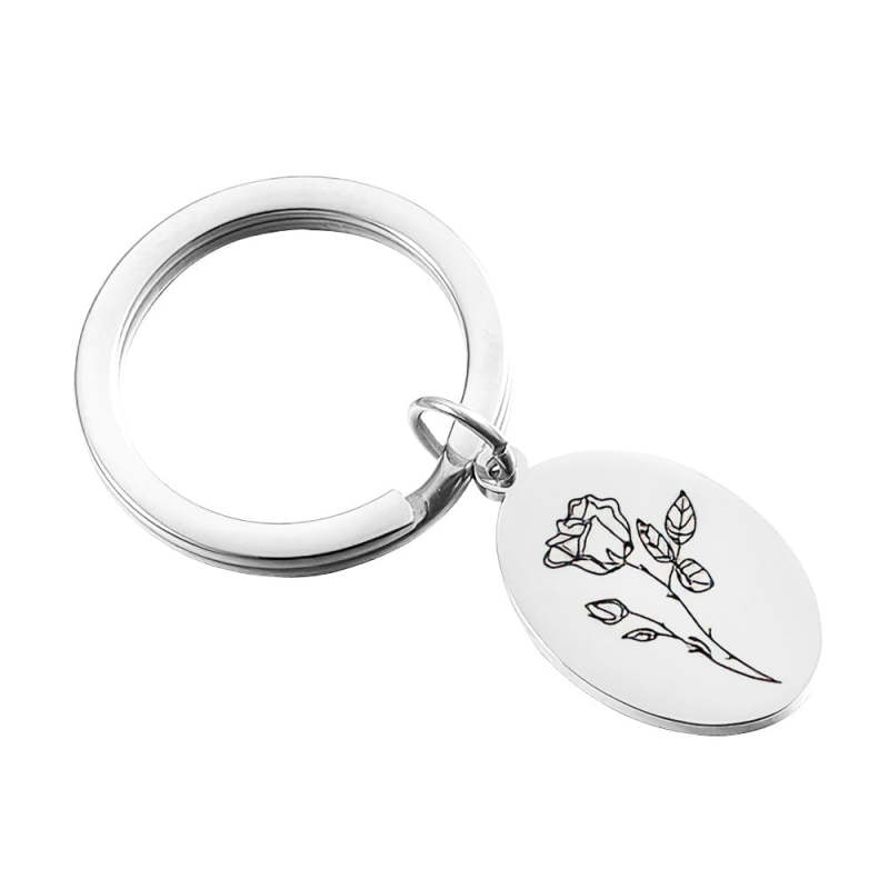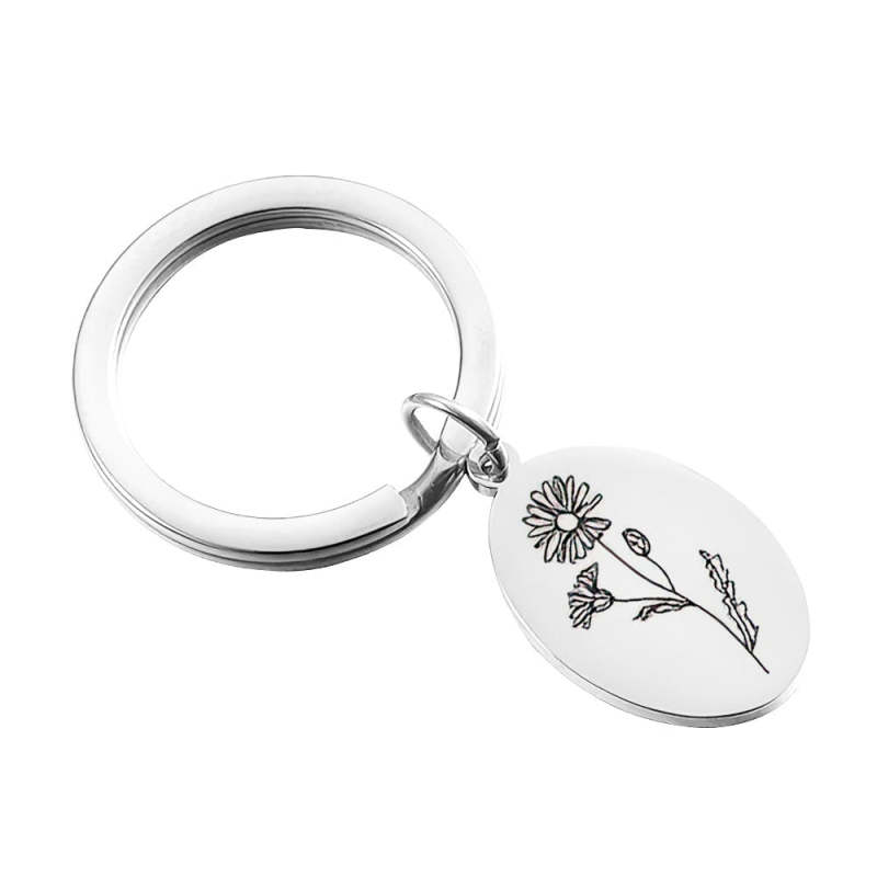 Creative Gift Custom Engraved Birthday Flower Keychain Gift for Her