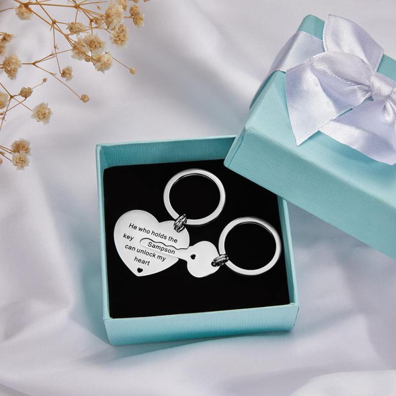 Personalized Engraved Heart Keychain Custom Names Key Valentines Day Gift