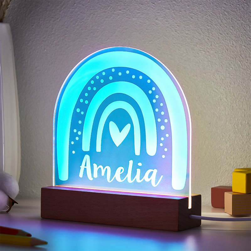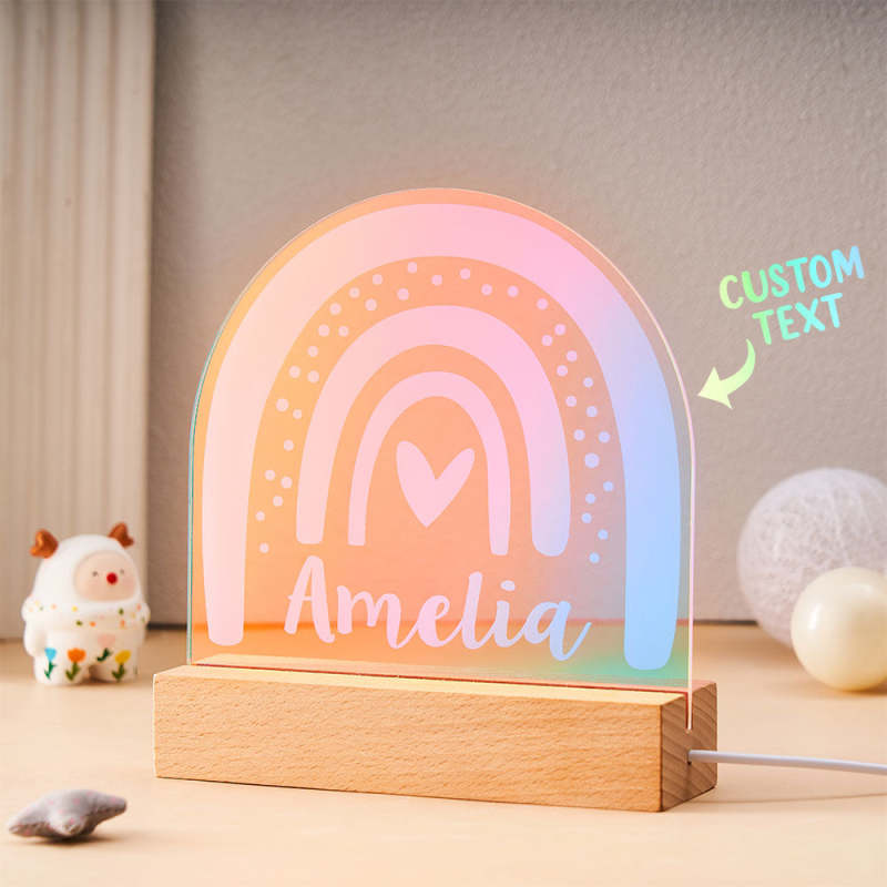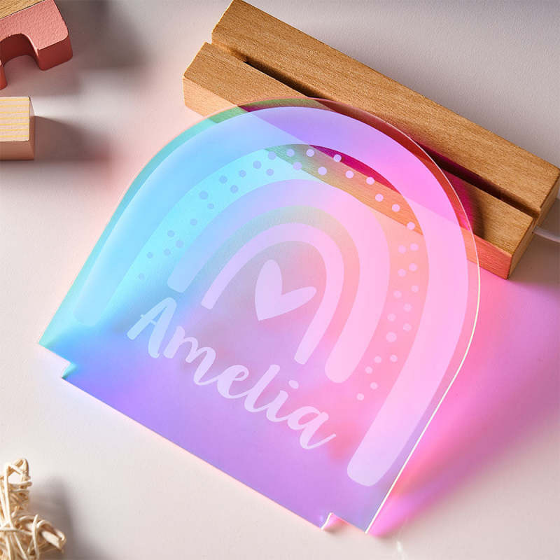 Personalized Engraved Rainbow Shape Colorful Laser Lamp Lovely Transparent Gradient Color Ornaments For Children