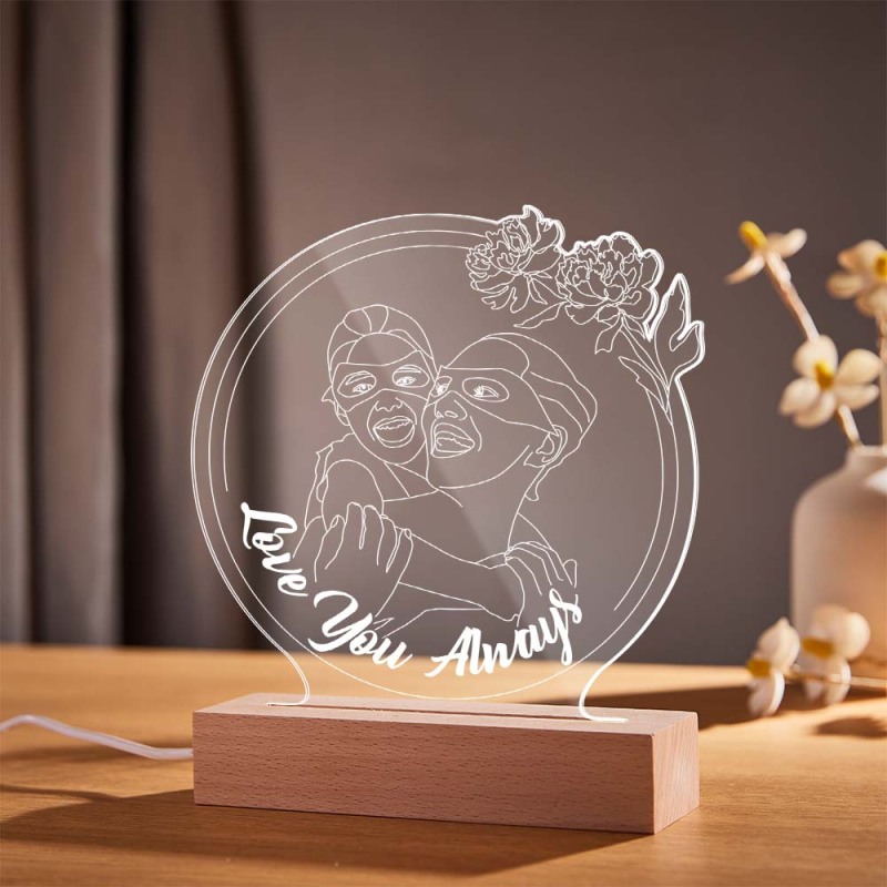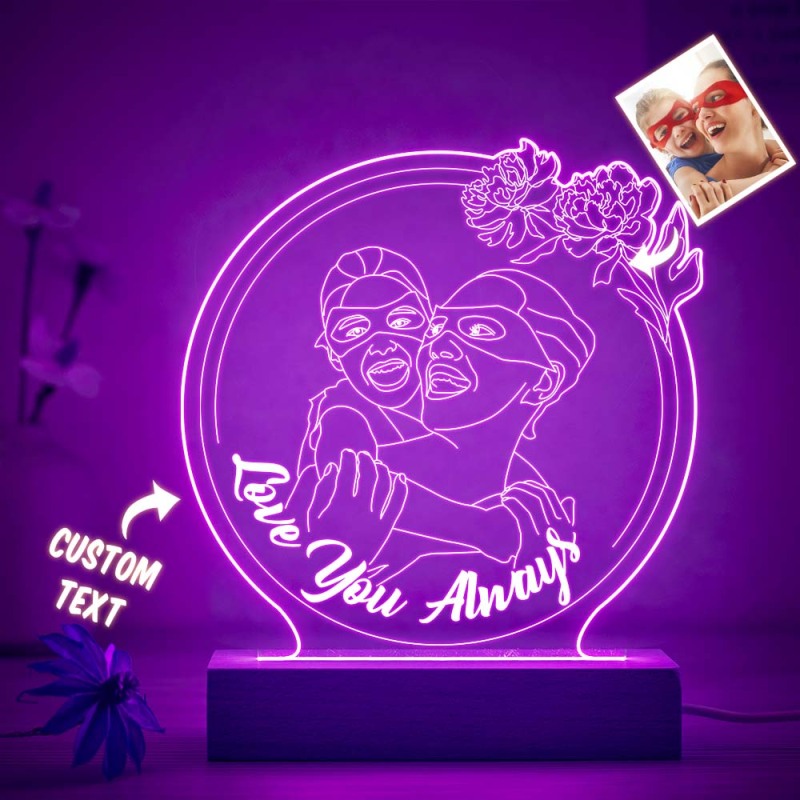 Personalized Flowers Photo Night Light Custom Engraved 3D Lamp 7 Colors Acrylic Night Light Mother's Day Gifts