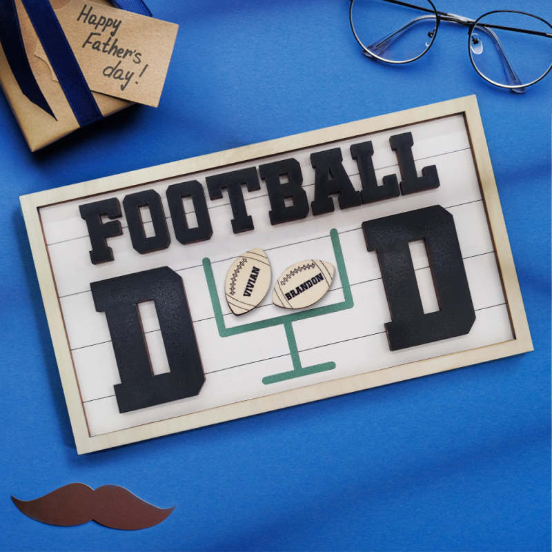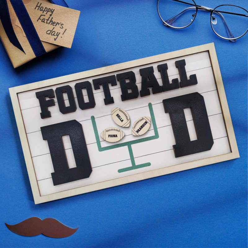 Personalized Football Dad Wooden Name Sign Plaque Father's Day Gift for Dad Grandpa