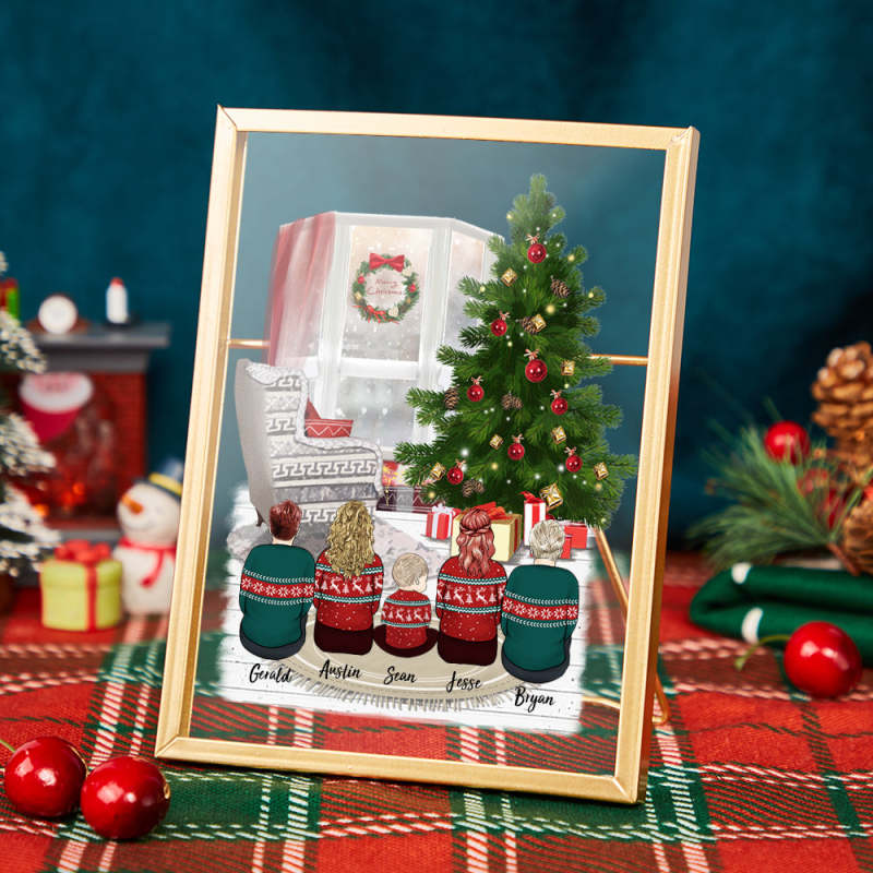 Personalized Cartoon Christmas Family and Pets Golden Frame