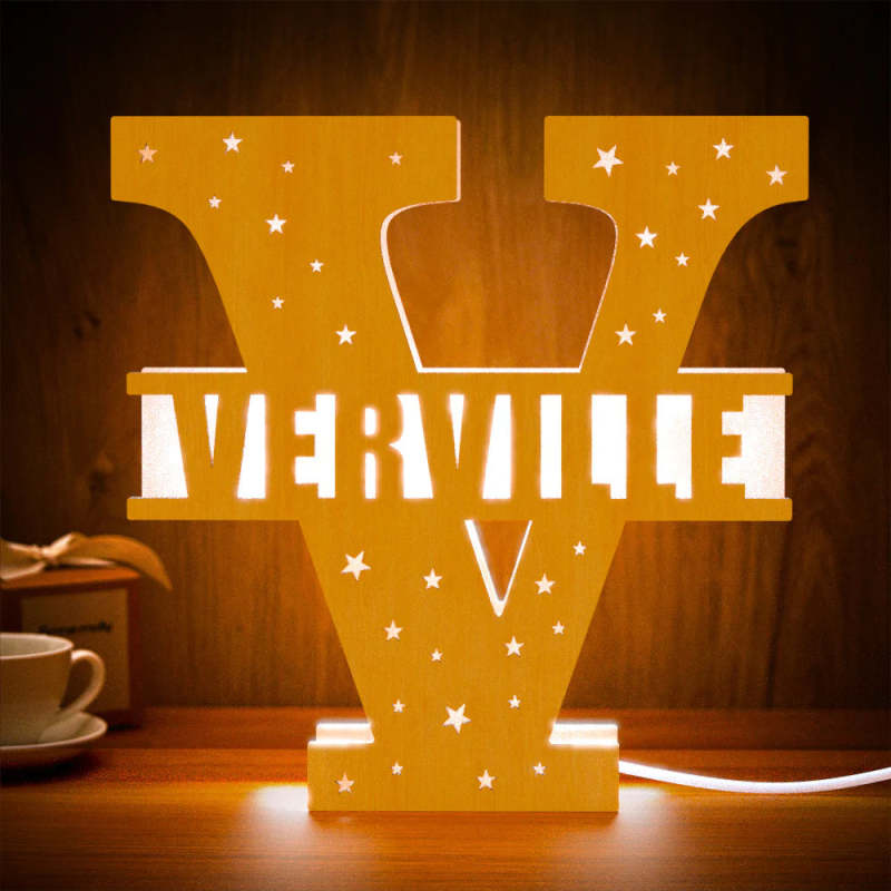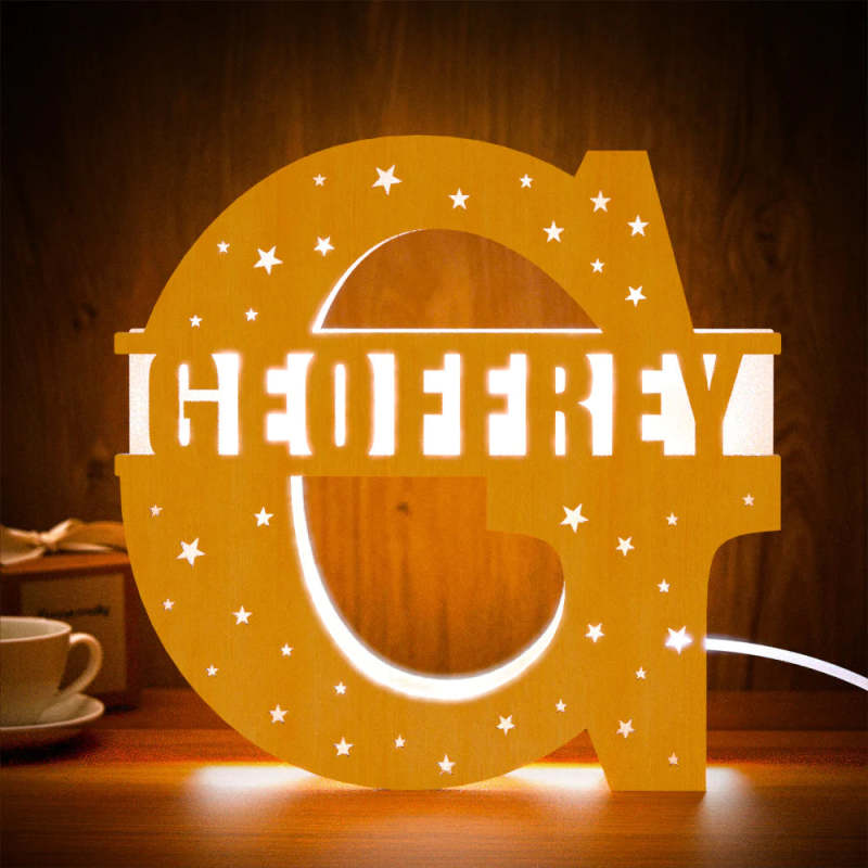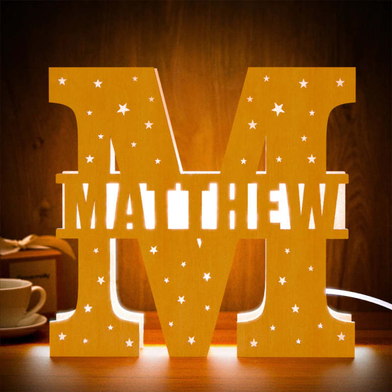 Personalized Initial Name Wooden Night Light Custom Letter Lamp Room Decor