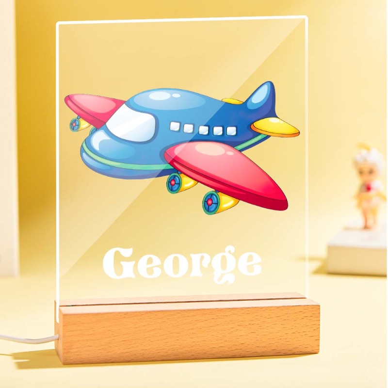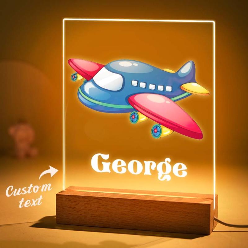 Personalized Led Night Light with Blue Airplane For Baby Boy Bedroom Decoration