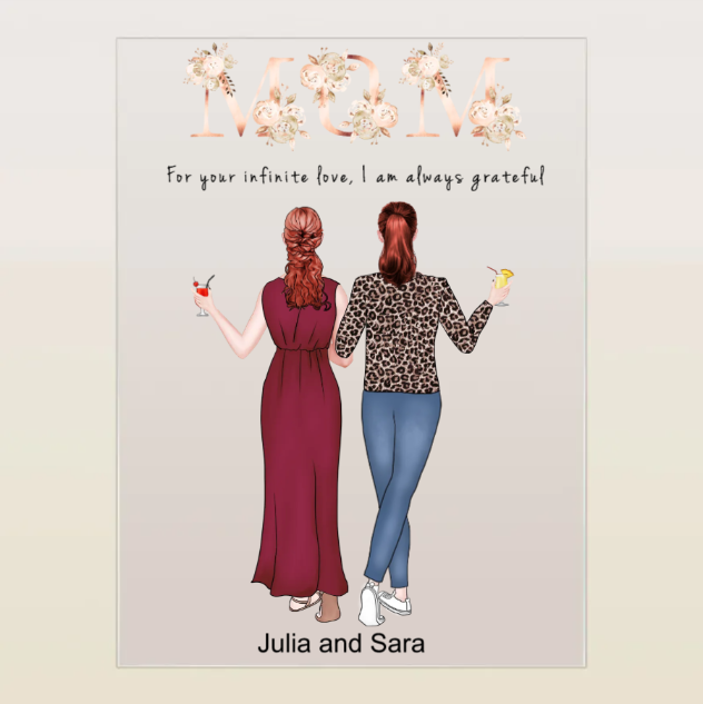 Personalized Mom and Daughter Back View Clipart Transparent Plaque Acrylic Lamp