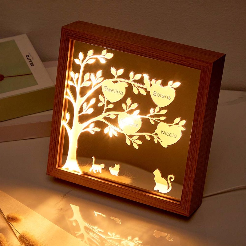 Personalized Name Family Tree Mirror NIght Light Freestanding Home Decor Gifts For Mom