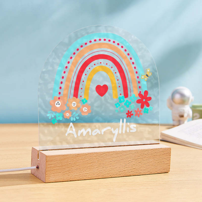 Personalized Name Water Ripple Lamp Colorful Rainbow with Flowers Desk Top Decoration