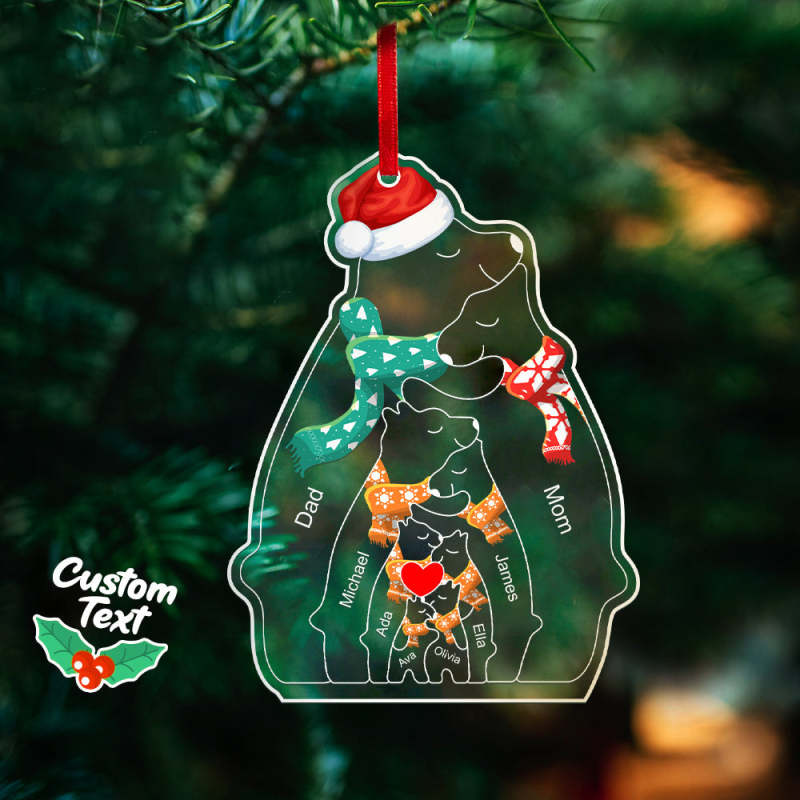 Personalized Names Christmas Bear Family Acrylic Ornament Custom Christmas Keepsake Ornament Christmas Gift Decor