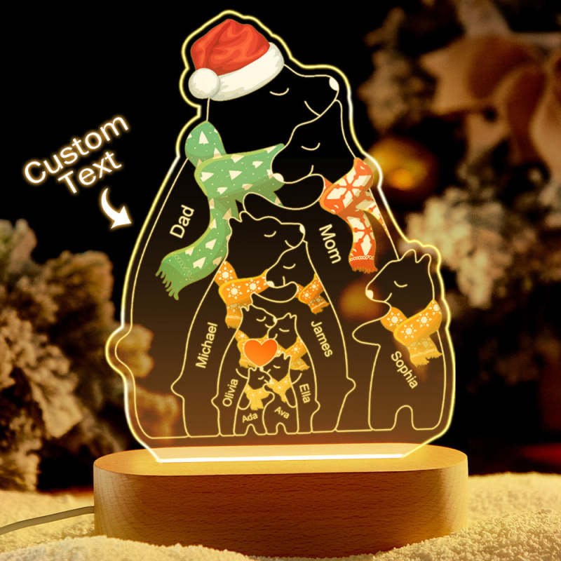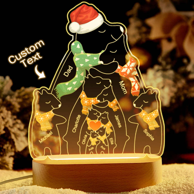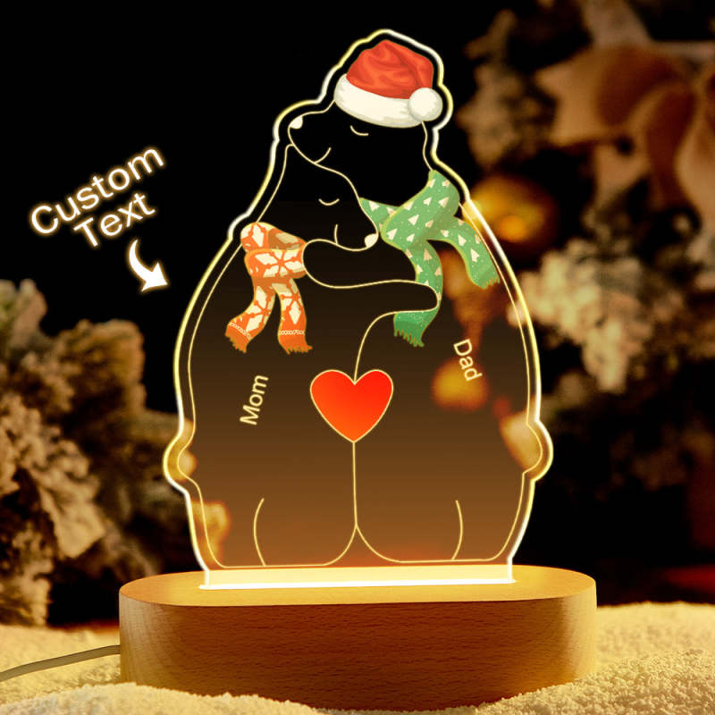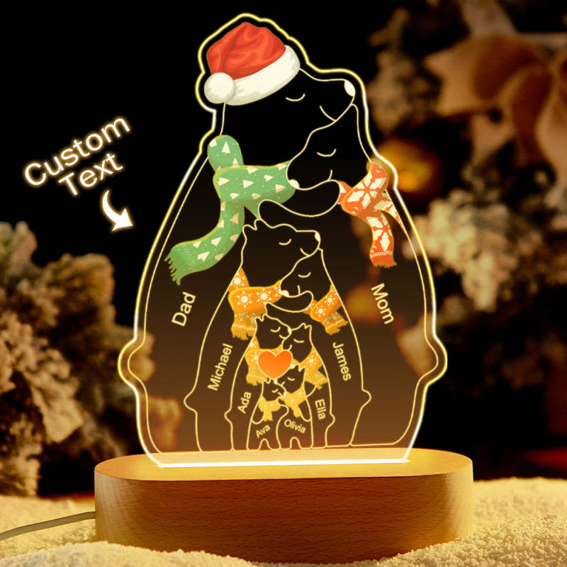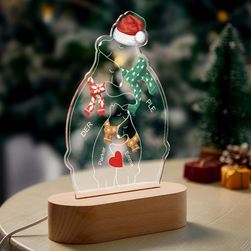 Personalized Names Christmas Warm Bear Family Acrylic Lamp Custom Night Light Best Christmas Gift