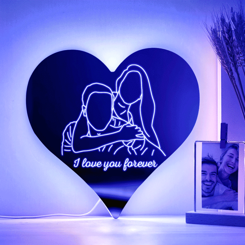 Personalized Photo Heart Mirror Colorful Lamp Line Drawing Led Night Light Exquisite Home Gifts