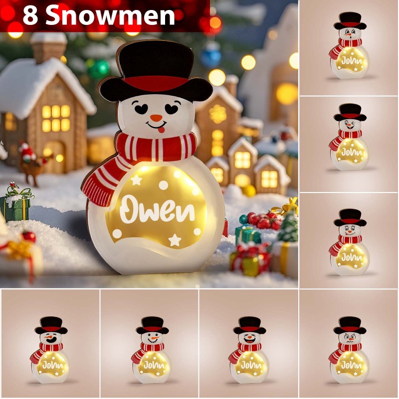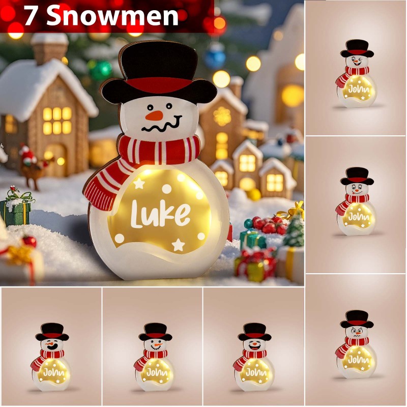 Personalized Snowman Wooden Decoration with LED Light Tabletop Winter Name Block Sign Holiday Party Supplies Christmas Gift for Family