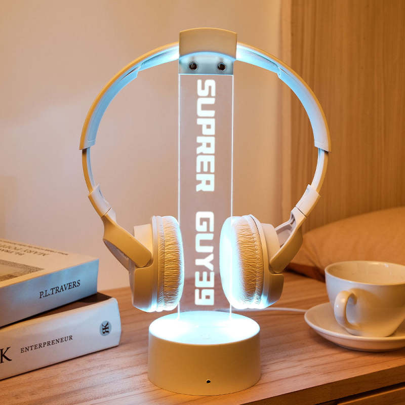Personalized Text Headphone Stand Night Light Trendy Gamer Headset Holder Gifts For Him