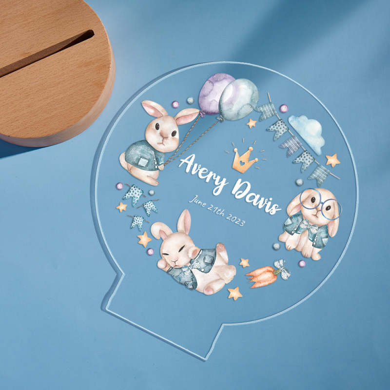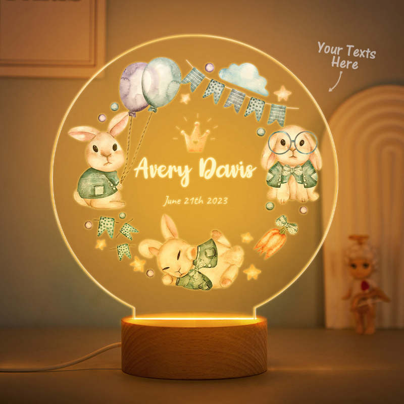 The Best Birthday Gifts For Baby Personalized Cute Crown Rabbit Night Light Custom name Flags And Balloon Table Light