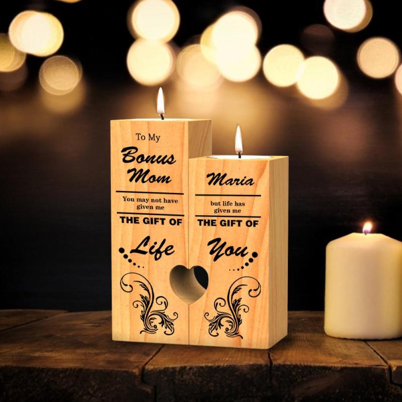 To My Mom Custom Wooden Candleholders Heart Shaped Tea Light Holder Mother's Day Gift