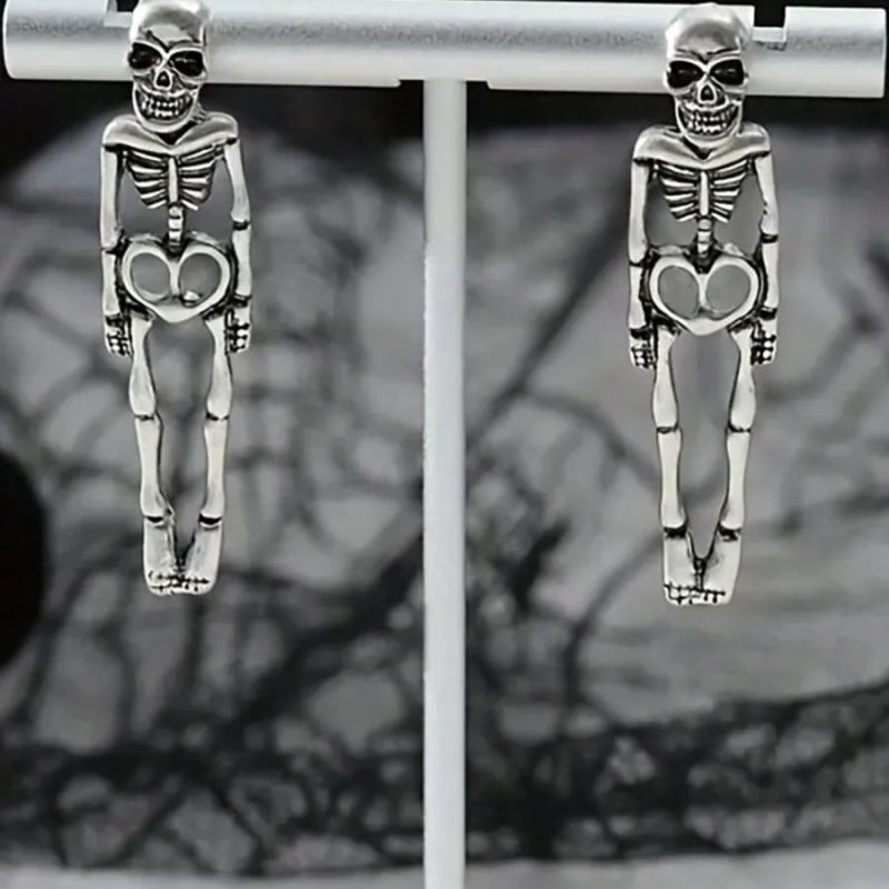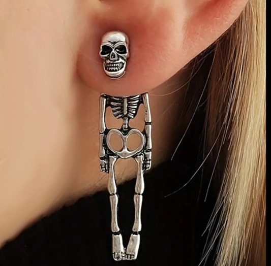 Unique Detachable Realistic Human Skull Skeleton Earrings For Women, Perfect For Halloween Parties